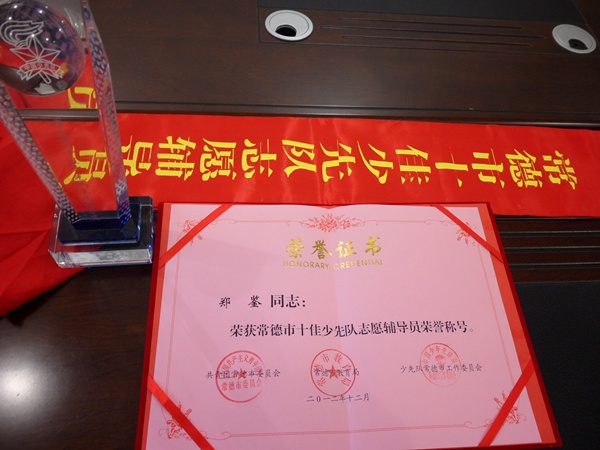 12月19日,中国少先队常德市第五次代表大会在芷园会堂里召开,常德市公安局巡特警支队三大队一中队中队长郑鉴同志被评选为“2012年度常德十佳少先队员志愿辅导员”,出席并参加了此次会议。