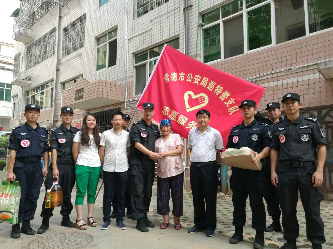 7月11日下午,在副支队长刘远平的带领下,巡逻防控大队民警在光荣路社区开展了青年志愿者扶贫帮困活动。 巡逻防控大队在日常巡逻防控过程中了解到光荣路社区居民穆奶奶(患有癌症,儿子意外去世,与年幼的孙女相依为命)和芮阿姨(一家三口无业,本人患有宫颈癌,儿子残疾)生活困难,大队全体民警一致认为应对这两位老人给予帮助,并组织青年志愿者开展帮扶慰问活动。11日下午3时,大队全体民警在副支队长刘远平的带领下,在社区居委会工作人员的陪同下,顶着烈日分别来到了两位困难户家中,带来了关心问候,送上了大米、菜油、水果等慰问品。刘远平副支队长和穆奶奶、芮阿姨进行了亲切交谈,鼓励他们鼓足信心,战胜困难,要相信生活一定会越来越好。两位老人非常感谢,并表示一定要战胜病魔,早日恢复健康。随后,翦勇大队长与她们互留了联系方式,表示今后将会给予她们力所能及的帮助。 虽然天气炎热,但是特警青年志愿者的慰问,给贫困老人及其家属带去了丝丝清凉。社区工作人员、穆奶奶和芮阿姨及周围的邻居都非常感动,对特警志愿者的无私帮助给予了高度赞扬。 |